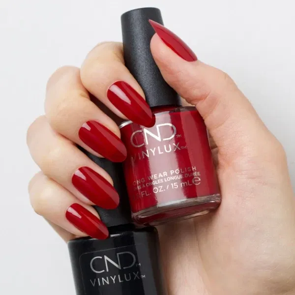 Decadence er en let dyb rød lak, som er en smule mørkere end den traditionelle røde farve du kender fra CND Vinylux Wildfire.  Decadence minder om Bloodline, men er en smule lysere i nuancen. Lakken er et godt alternativ til den røde lak.
