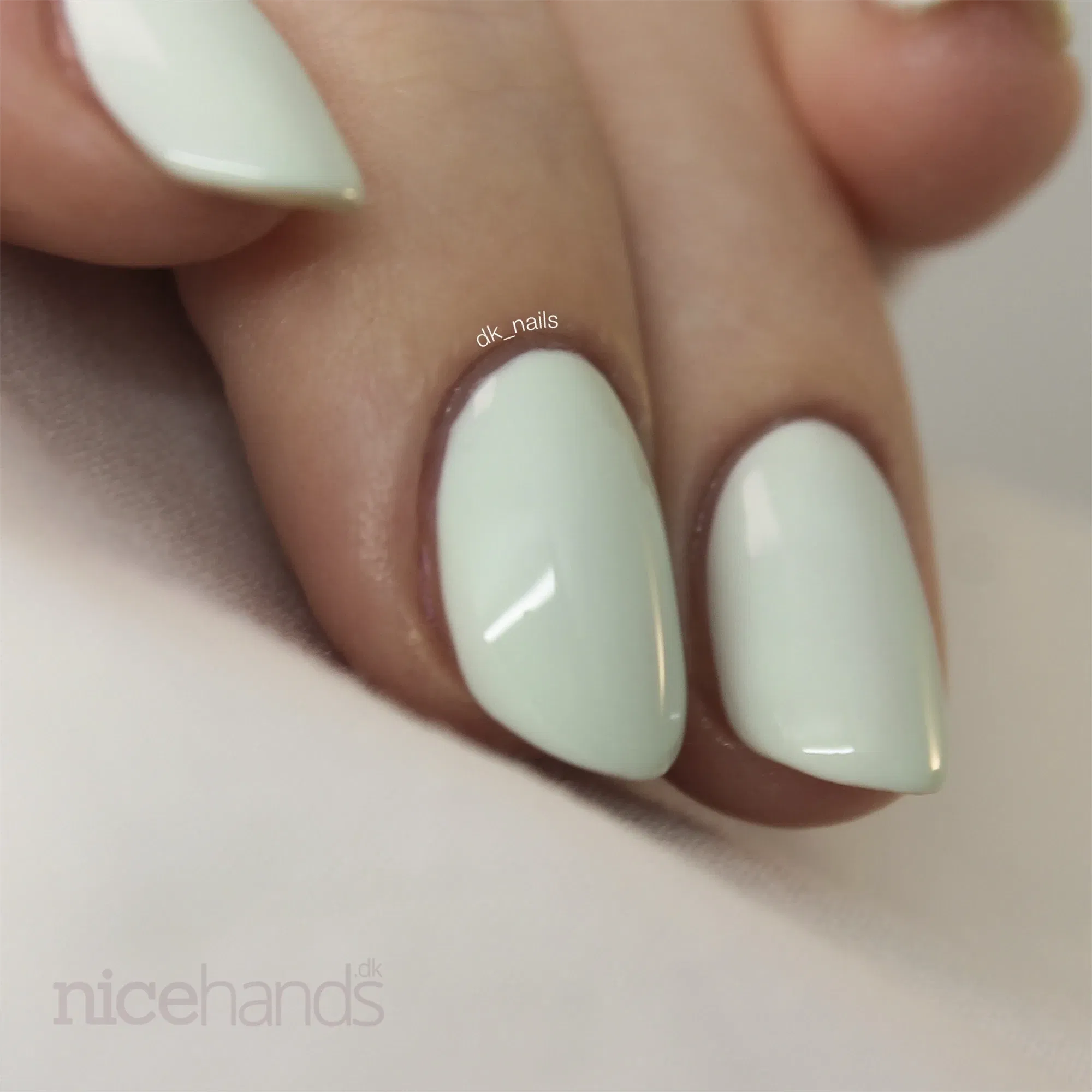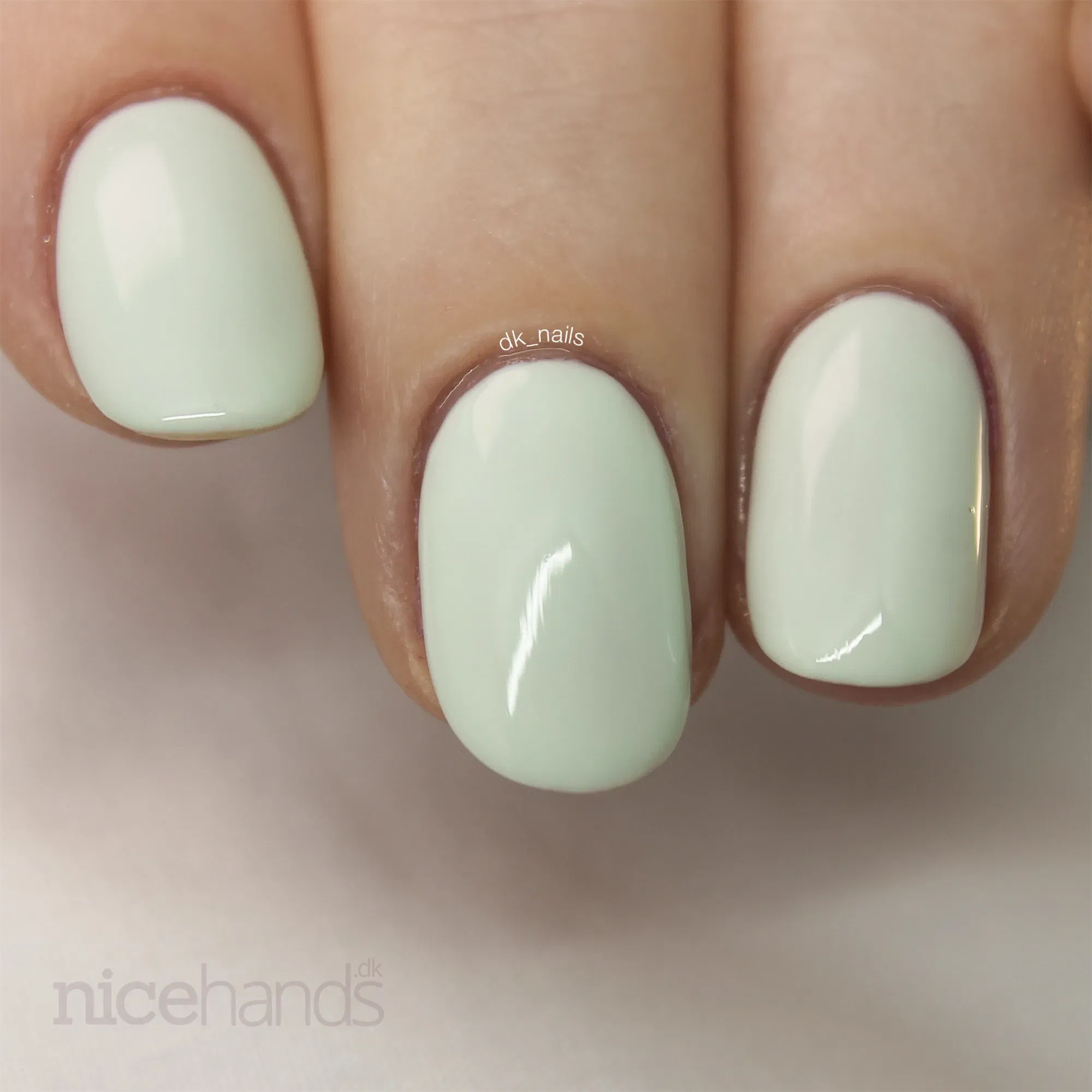 Ambre er en fin afdæmpet lys lys mint grøn neglelak. Ambre er super godt pigmenteret og dækker næsten helt ved første lag. Det anbefales dog altid at lægge 2 lag neglelak og afslutte med en