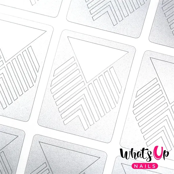 Whats Up Nails stencils er skabeloner i høj kvalitet til en række flotte nail art-designs – fx mønstre, mosaikker, hjerter og meget mere. Kært barn har mange navne: Stencils, vinyl, klistermærker osv. Men fælles for dem alle er, at de er lavet af tynd, fleksibel klæbefolie, som sættes på neglene og fungerer som skabelon for mønstre. Det er engangsbrug – sæt på, pensl, dup, drys… og fjern skabelonen igen. Voilà!