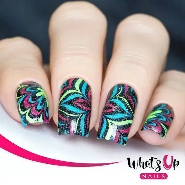 Watermarble stampingplade hvor du får 12 fantastiske vandmarmor designs, der tilføjer smuk marble til dine negle uden alt.
