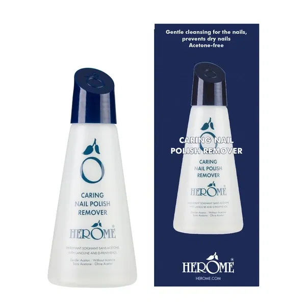 Acetonefri neglelakfjerner fra Herôme renser neglene effektivt uden at udtørre neglene. Caring Polish Removeren fra Herôme fjerner din neglelak skånsomt, samtidig med at den giver neglene fugt. Neglelakfjerneren indeholder Lanolin og D-Panthenol som medvirker at neglene ikke udtørrer fuldstændigt og rent faktisk er pæne efter aftagning af neglelak.