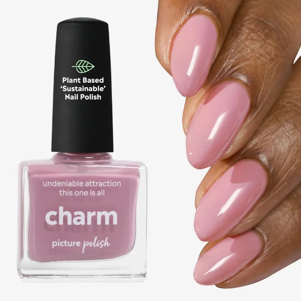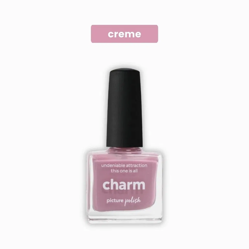 Charm fra Picture Polish er en lys mauve creme-neglelak, der kombinerer sofistikeret elegance med et moderne twist. Den subtile lilla undertone gør farven alsidig og let at matche – perfekt som en neutral, der stadig har karakter.
