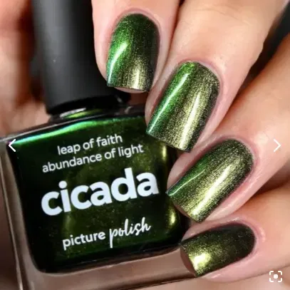 Cicada fra Picture Polish er en fascinerende multichrome neglelak, der skifter fra glitrende guld til levende grøn og brune nuancer alt efter lyset. Den stærke skifte-effekt giver en dramatisk dimension, som gør farven både unik og iøjnefaldende.