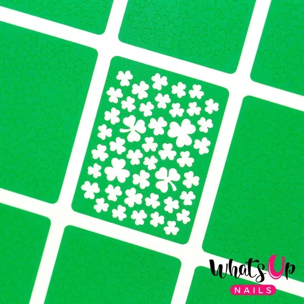 Disse stencils viser små og fine kløverblade – perfekte til et enkelt og sødt St. Patrick’s Day‑look eller som frisk manicure året rundt.