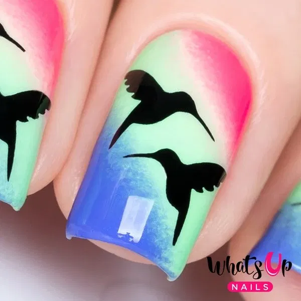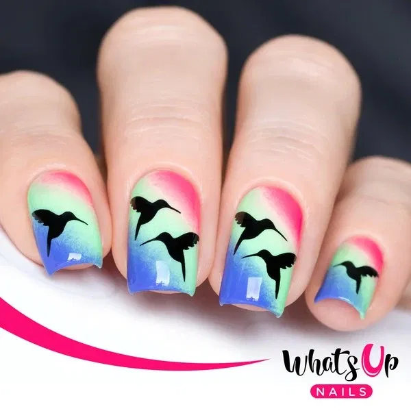 Disse stencils viser elegante kolibrier med detaljerede vinger og næb – perfekt til et elegant naturinspireret look. Designet giver liv og bevægelse til neglene og er ideelt til en sofistikeret, sommerlig manicure.