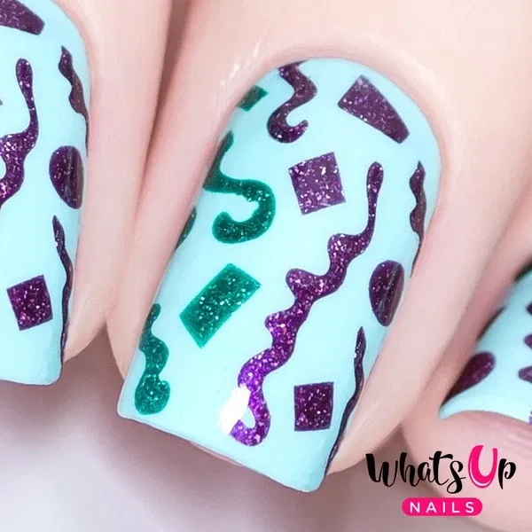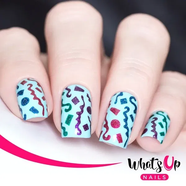 Disse stencils viser festligt confetti pynt i forskellige størrelser og former – perfekte til at skabe et festklart og farverigt look på neglene.