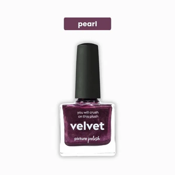 Velvet er essensen af elegant, intens farve – en dyb og mørk bær/plomme nuance med et blødt perlemor-satin skær. Farven har ingen glimmer eller flakes, men en silkelignende glans med shimmer.