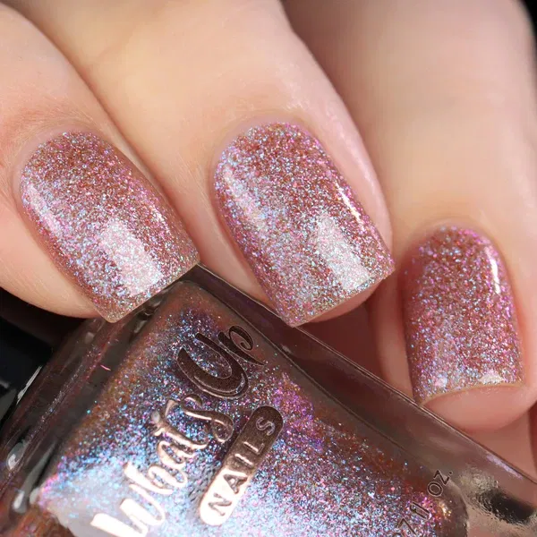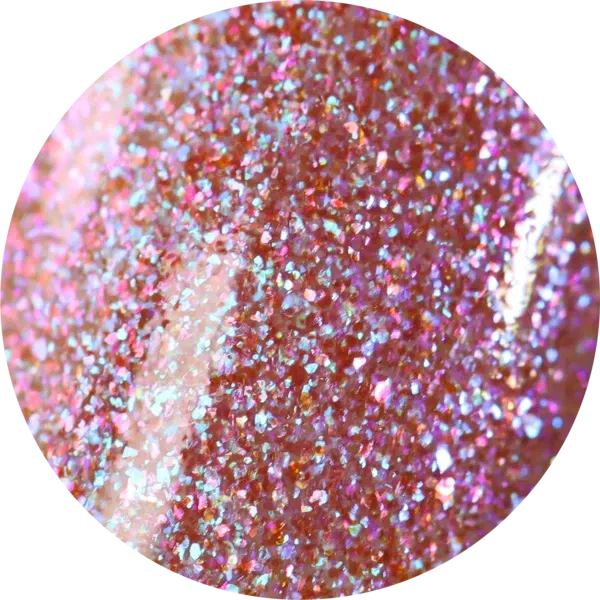 Crystal har en blå base med duochrome shimmer, der skifter mellem blå og lilla nuancer. Den er en del af Geodes-kollektionen og indeholder glimtende partikler, der giver et flot og glitrende udtryk.
