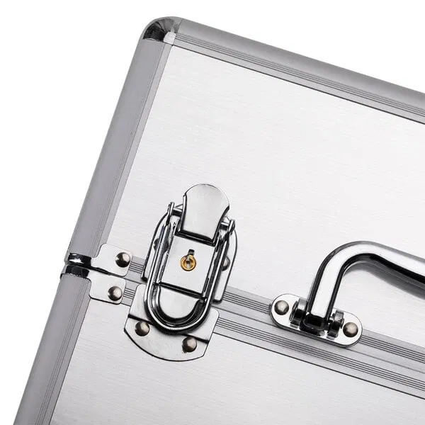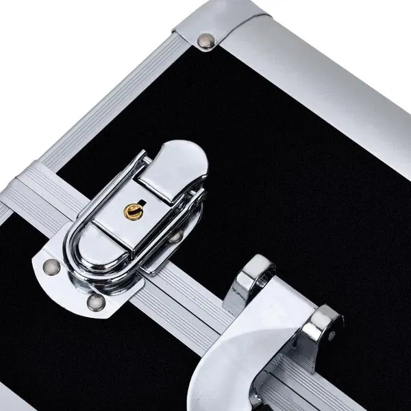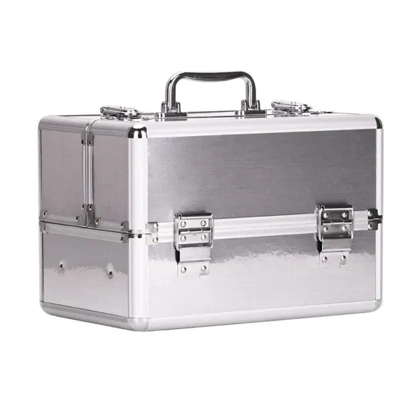 Denne smukke og funktionelle kosmetikkuffert er det perfekte valg for dig, der ønsker en stilfuld og praktisk løsning til opbevaring af dine neglelakker eller gelpolish eller andet kosmetisk tilbehør. Den smukke sølv kuffert kombinerer elegance med funktionalitet – ideelt til dig der arbejder i marken eller til opbevaring af neglesager derhjemme