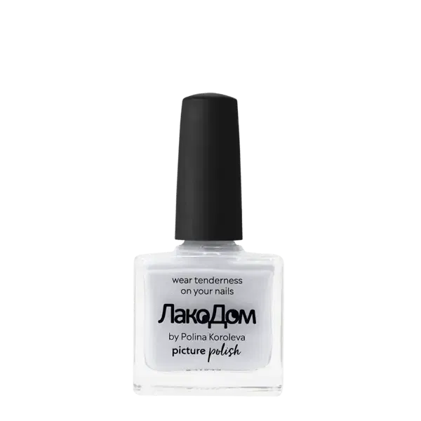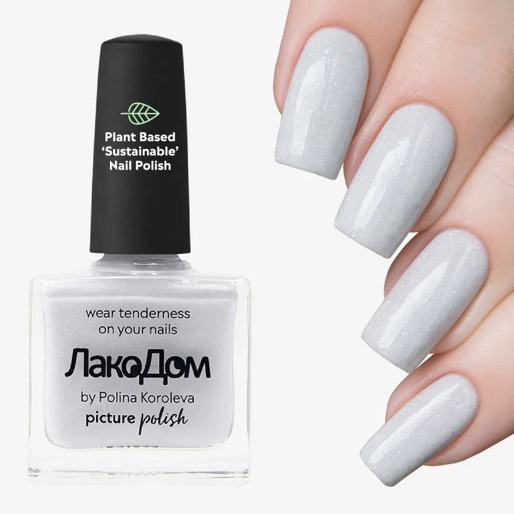 Lakodom fra Picture Polish er en råhvid neglelak med scattered holografiske flakes, der glimter smukt i lyset. Den lyse base fremhæver de funklende holo-flager og giver et delikat, men samtidig levende udtryk på neglene.