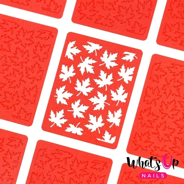 Disse stencils viser forskellige løvformer – perfekt til at skabe et tydeligt og stemningsfuldt efterårslook på neglene.