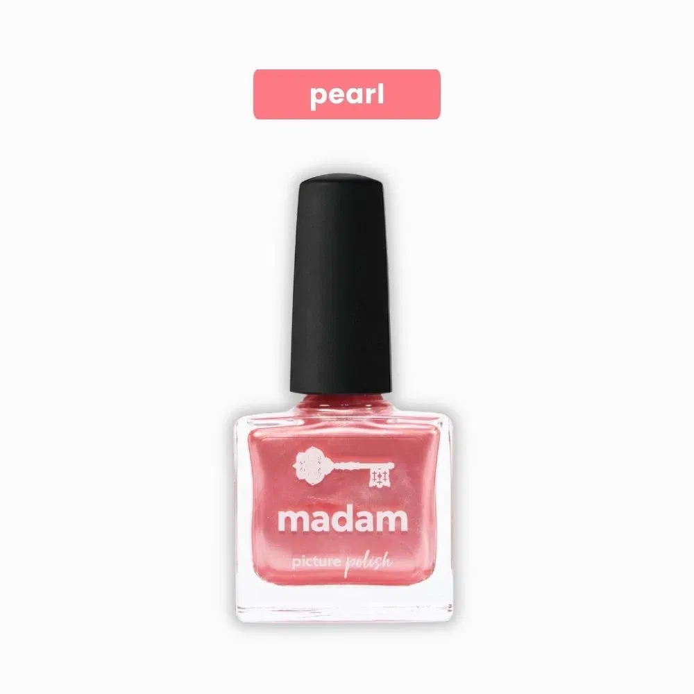 Madam fra Picture Polish er en intens koralrød chrome-neglelak spækket med ultrafint shimmer, der lægger sig tæt og giver en metallisk glansfuld overflade. Det diskrete gyldne skær tilføjer varme og gør farven ekstra uimodståelig.