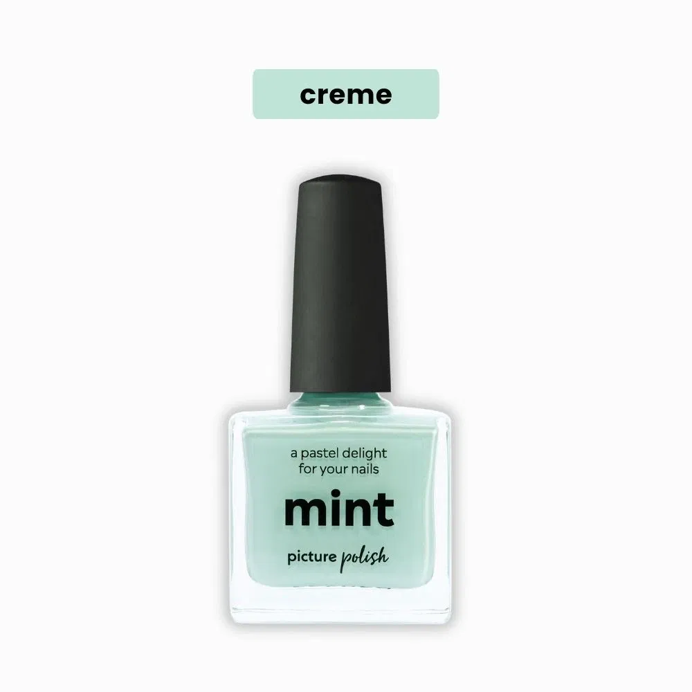 Mint fra Picture Polish er en støvet sky-lyseblå creme-neglelak, der giver et frisk og roligt udtryk. Nuancen er enkel og delikat, og uden glitter eller shimmer står farven helt ren og smooth på neglene.