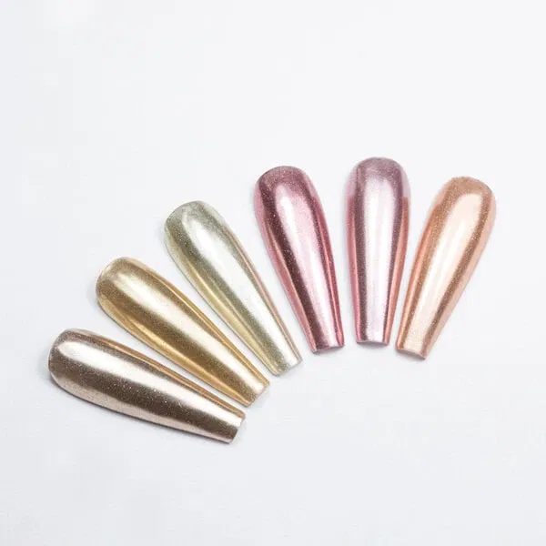 Det her sæt med 6 spejl-pigmenter forvandler enhver negl til en skinnende, satinagtig overflade, du næsten kan spejle dig i. Farverne er presset i praktiske små rum, så det ikke støver over det hele – og du sparer på produktet.