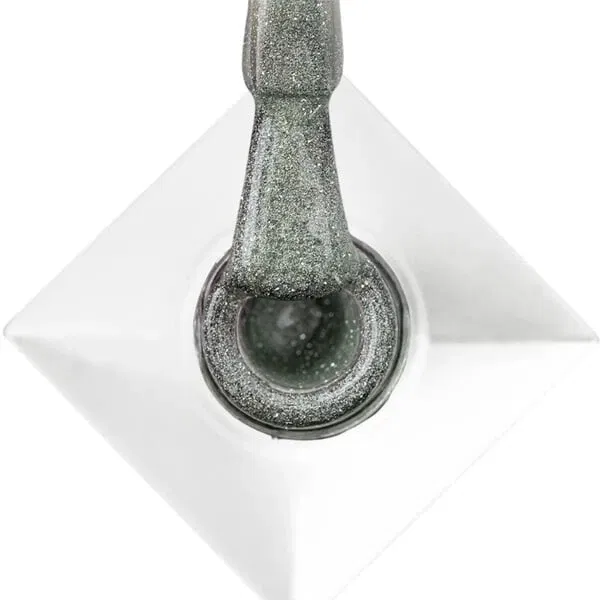 En delikat, grønlig gelpolish med fin holografisk shimmer og magnetisk “cat-eye” effekt. Nuancen er fra kollektionen Molly Nails Crystal Water Cat Eye, som byder på magnetiske, glitrende partikler, der – når du bruger en magnet – danner en tredimensionel dybde i looket.
