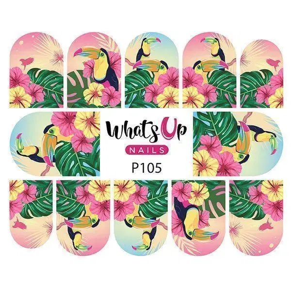 Super smuk tropisk inspireret Water Decal med farverige Tucan fugle og palmeblade. Se hvordan du bruger disse smart Water Decals lige her: