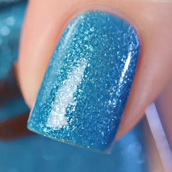 Slippery When Cold er en kølig, blå neglelak med intens chrome shimmer og frostet effekt. Den giver et klart, spejllignende skær kombineret med et trendy mat look.