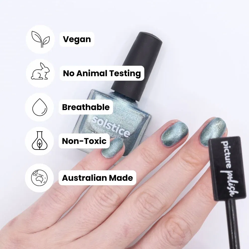 Solstice er en magnetisk lak i en teal-grøn base | Limited edition